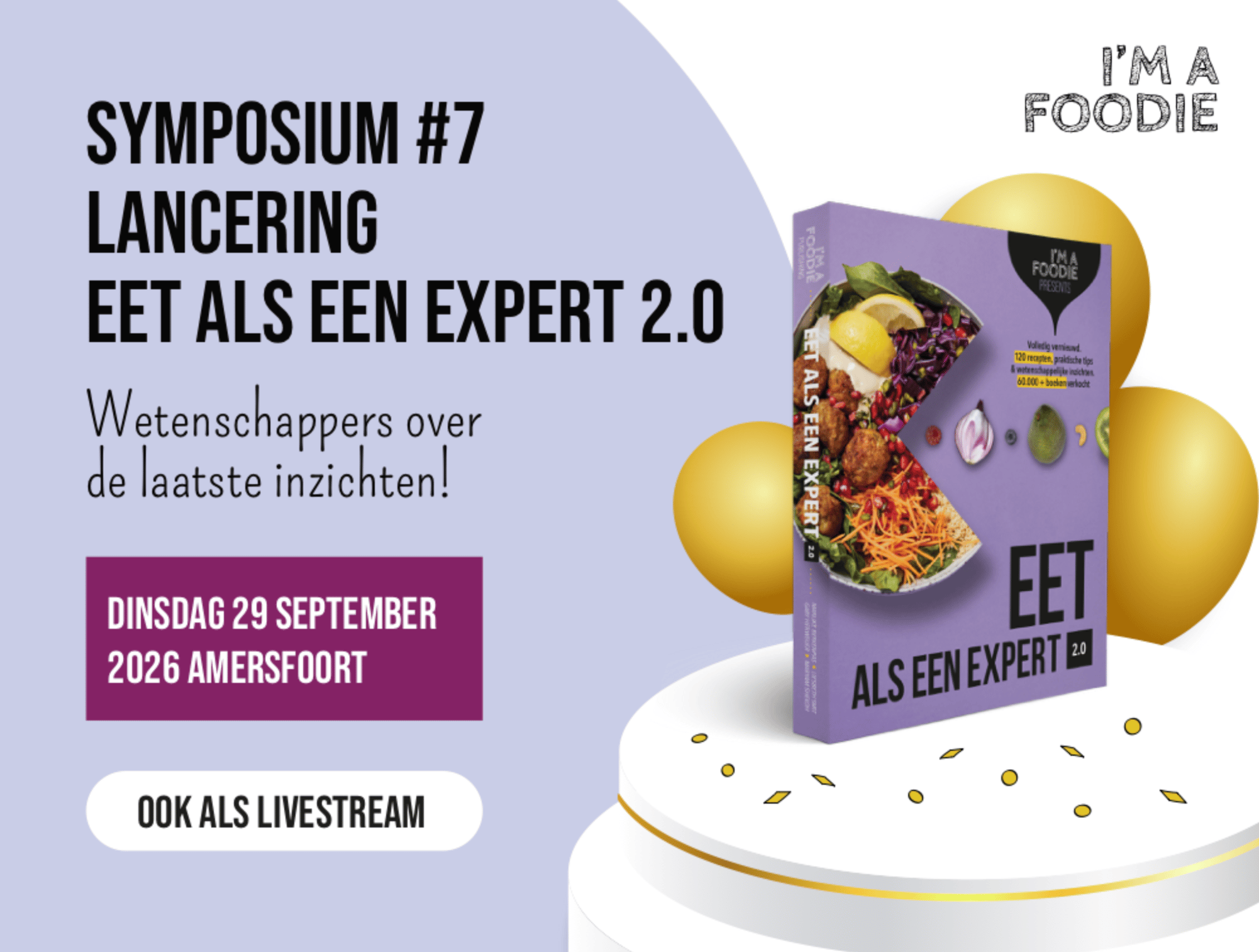 Op dinsdag 29 september vieren we de lancering van Eet als een expert 2.0 tijdens de zevende editie van het I’m a Foodie Symposium. Deze dag staat volledig in het teken van nieuwe thema’s in het boek.