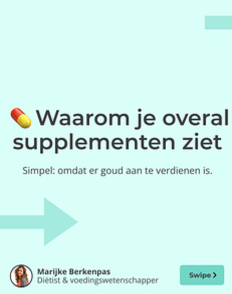 Dat is geen toeval. De supplementenmarkt is gigantisch en er gaat enorm veel geld in om. En waar winst te halen valt, wordt er volop gepusht. Wat veel mensen niet weten: de prijs van een supplement zegt zelden iets over de kwaliteit. Een simpele multivitamine van het huismerk kan letterlijk hetzelfde bevatten als het “premium” potje dat een influencer aanprijst voor een veelvoud van de prijs.